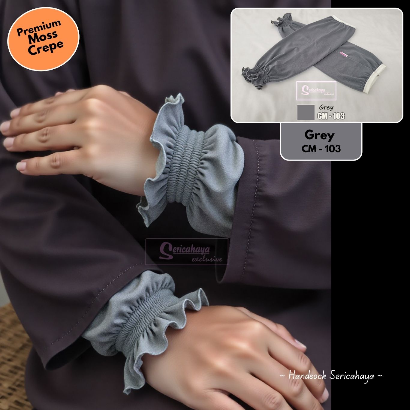 HANDSOCKS BESAR RUFFLES – Inner Lengan Separas Siku & Longgar – GREY