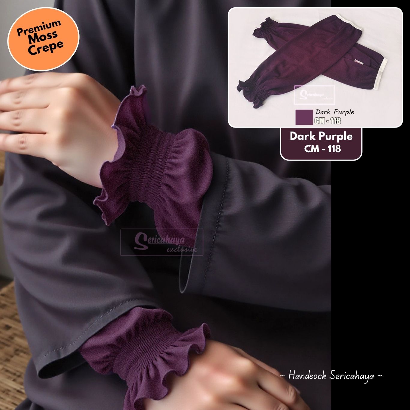 HANDSOCKS BESAR RUFFLES – Inner Lengan Separas Siku & Longgar – DARK PURPLE