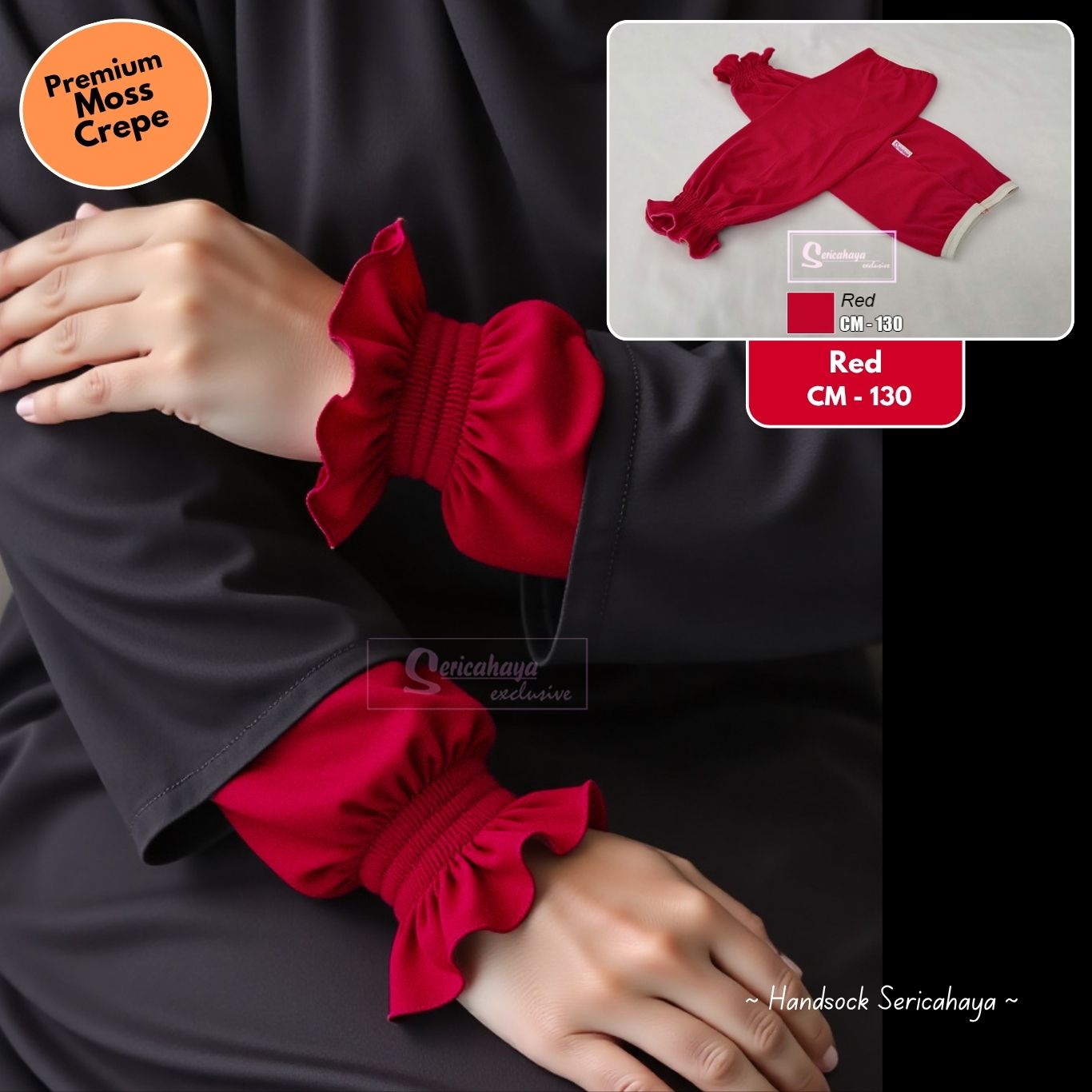 HANDSOCKS BESAR RUFFLES – Inner Lengan Separas Siku & Longgar – RED
