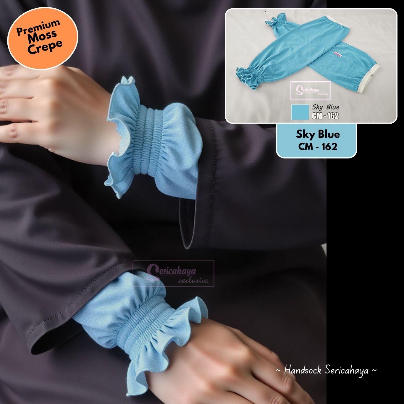 HANDSOCKS BESAR RUFFLES – Inner Lengan Separas Siku & Longgar – SKY BLUE