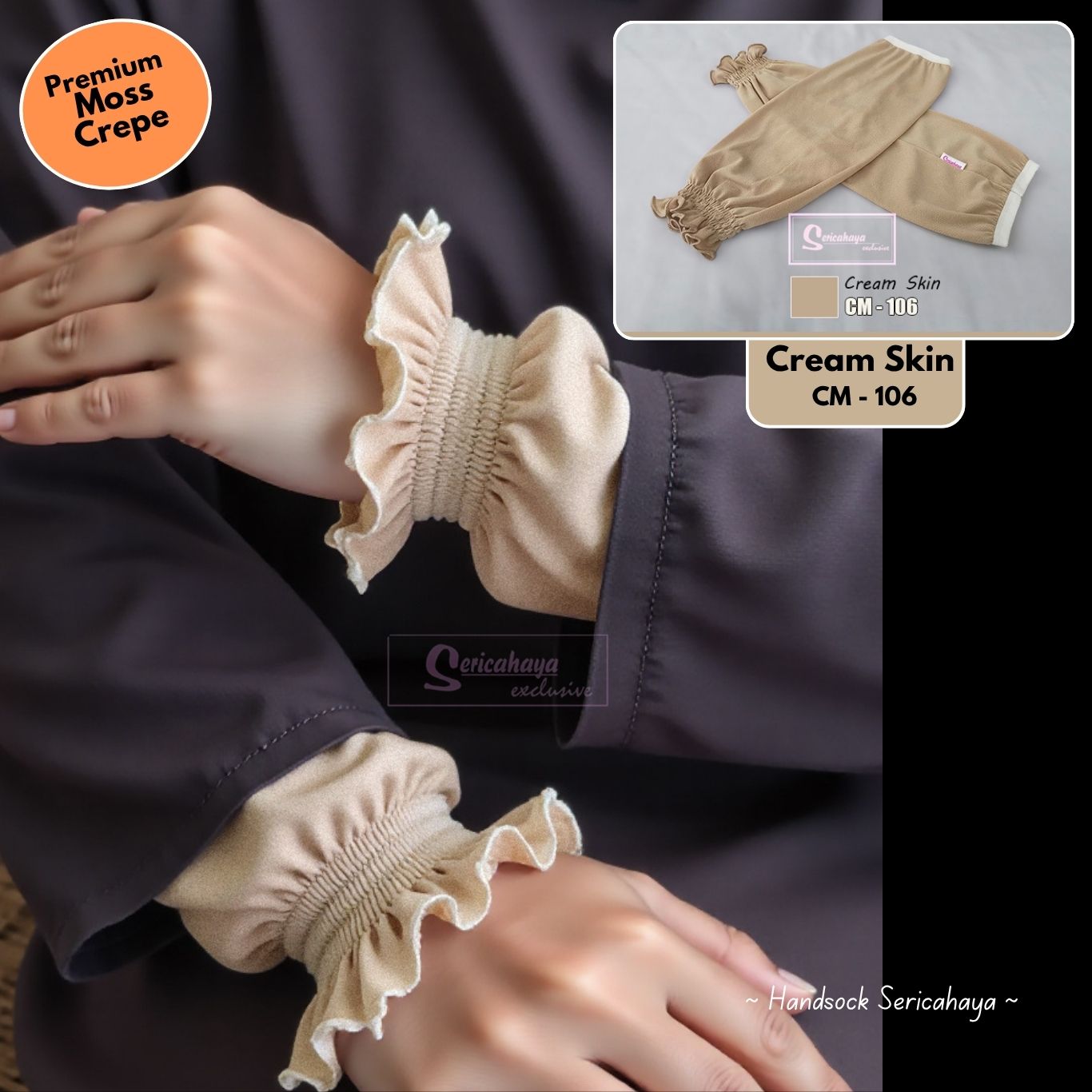 HANDSOCKS BESAR RUFFLES – Inner Lengan Separas Siku & Longgar – CREAM SKIN